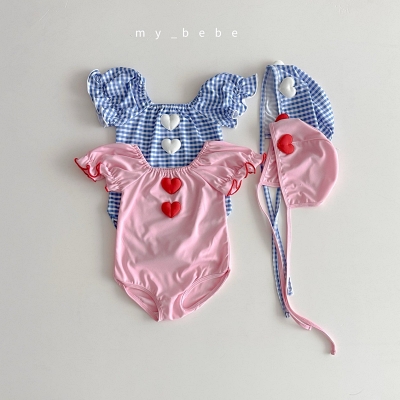 마이베베.하트모티브셔링수영복(수영복+모자SET)